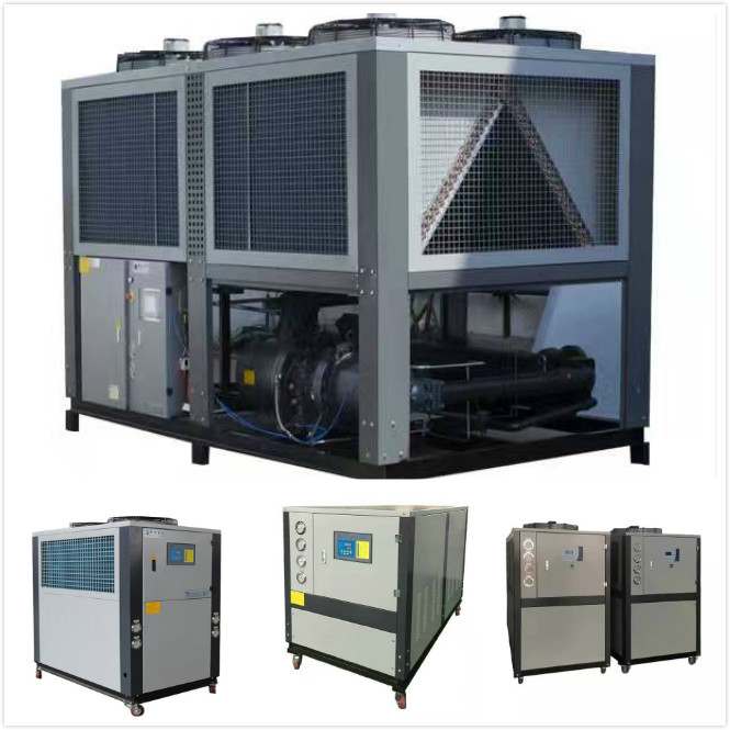 工业制冷设备按制冷形式一般可分为水冷式和风冷式,在技术上,水冷比风冷能效比要高出到的;在价格上,水冷要比风冷低得多;在安装上,水冷需纳入冷却塔方可使用,风冷则是可移动,无需其他辅助,但风冷式冷水机只凭风扇散热,对有所要求:例如通风,湿度,温度不能高,空气酸碱值等。